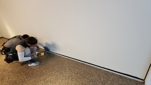 스튜디오 벽 2면 전체 거울을 필름으로 시공작업해드렸습니다.